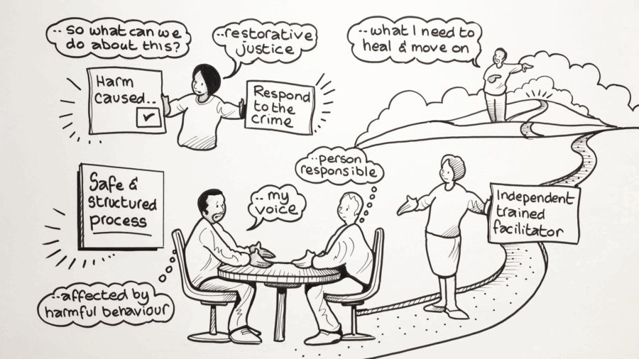 During the test case project, the RJ facilitator supported a person with lived experience of harm to write a letter to the person who harmed them. The restorative process and its outcomes have since developed into a scenario for a creative short narrative film that CJS is supporting to produce.